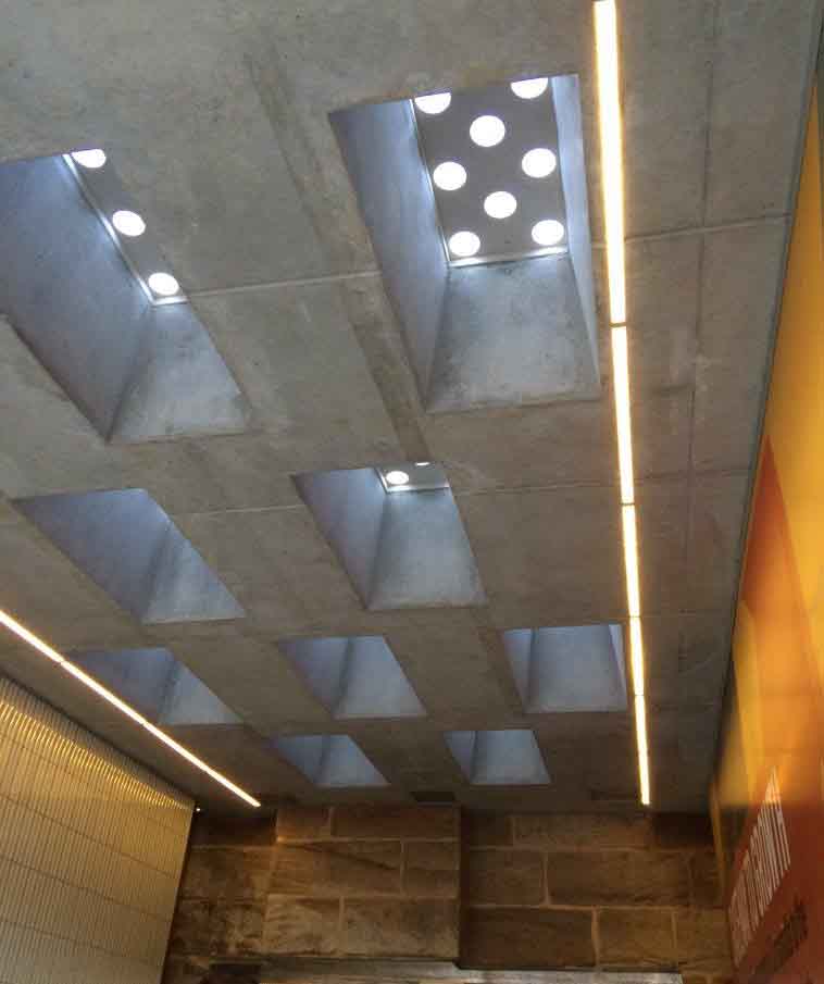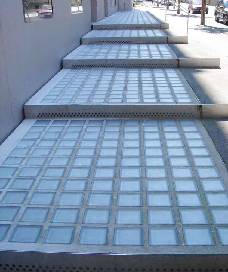 La lumière vibre, et ondule, en traversant avec élégances les pavés de verre des surfaces horizontales qui disparaissent subtilement pour apporter de la profondeur à l’espace. Les pavés de verre soulignent les lignes des bâtiments et permettent d’exprimer une grande créativité architecturale par des jeux de lumière naturelle ou artificielle.