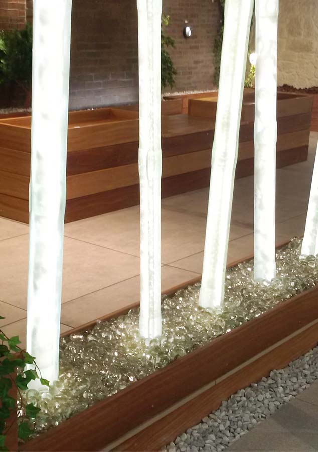 La Rochère conçoit des produits différents à intégrer autrement à l’architecture, aux créations paysagées, à un intérieur décoré. Galets de verre pour les gabions, pour les espaces extérieurs, en décoration d’intérieure, lentilles de verre pour les murs banchés ou pour créer des yeux lumineux dans les surfaces verticales, pavés lumineux pour éclairer les allées ou souligner le pourtour d’un bâtiment… l’imagination est la seule limite !